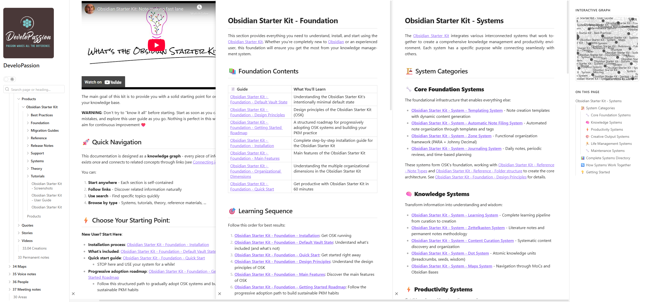 The Obsidian Starter Kit is a comprehensive knowledge system that transforms Obsidian into a complete productivity and learning environment. It combines proven methodologies (PARA, Zettelkasten, Johnny Decimal, GTD) with a battle-tested organization that scales from 10 notes to 10,000+ notes.
